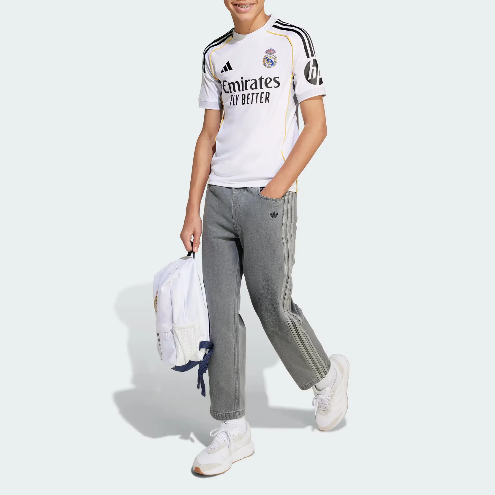 To verify the authenticity of the Adidas Real Madrid T Shirt SS25, examine the shirt's appearance closely. The colors should be vibrant, and the badge should be embroidered with precision. Authentic shirts will have a smooth texture and the stripes should be evenly spaced without any misalignment.