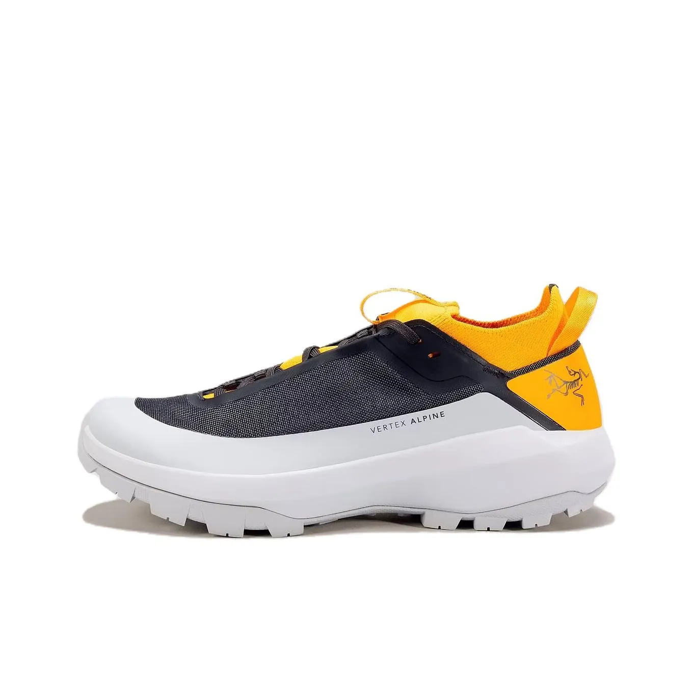 For the Gray Yellow variant of the Arcteryx Vertex Alpine Hiking Shoes, inspect the color scheme and material. Authentic shoes will have a vibrant and consistent color without any discoloration. The upper material should feel robust, and the sole should have a firm grip pattern that is well-defined.