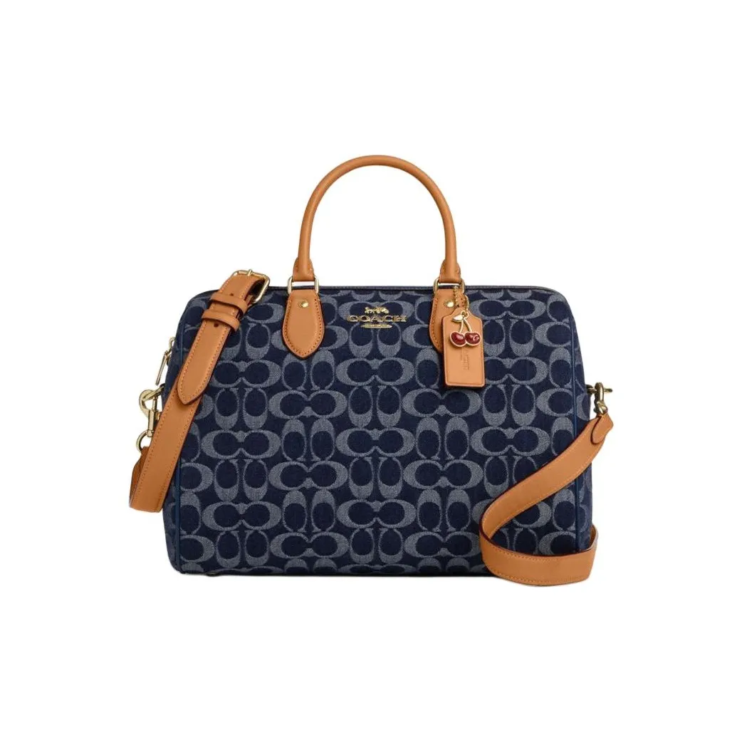 COACH Rowan Fabric Boston Bag One Shoulder Handbags Mini Women's Denim Blue