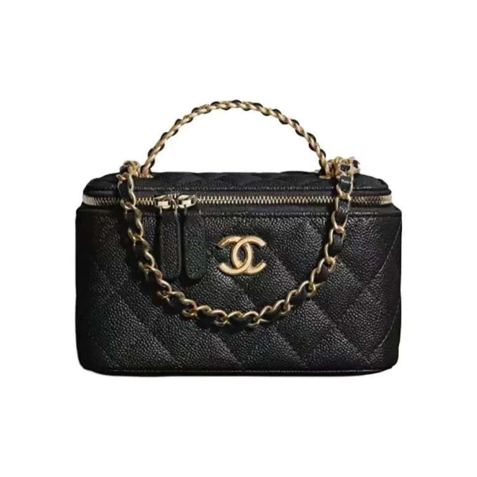 CHANEL Litchi Grain Cow Leather Box Bag, Makeup Bag, Shoulder Bag, Crossbody Bag Unisex Black