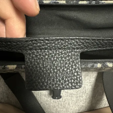 The label on this DIOR BookTote should be checked for authenticity. It must be securely stitched and display the brand name and style ID clearly. Look for any signs of wear or fading on the label, as genuine products maintain their quality over time.