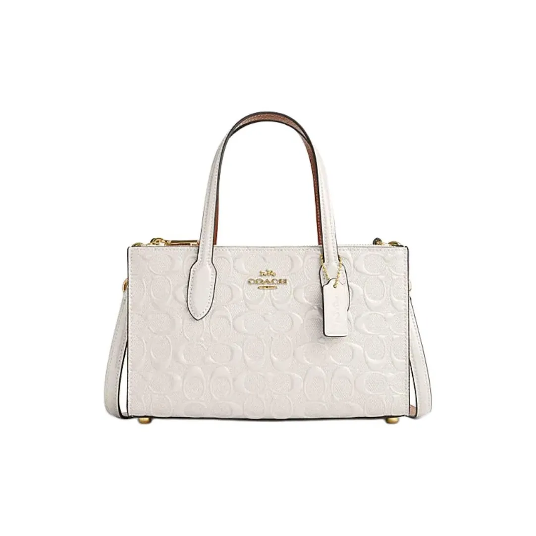 For the COACH Handbags, check the overall appearance for authenticity. The cow leather should be of high quality, with a smooth texture and consistent color. The magnetic closure should function properly, and the interior should be well-finished with no loose threads. The chalk white color should be bright and even, with no signs of wear.