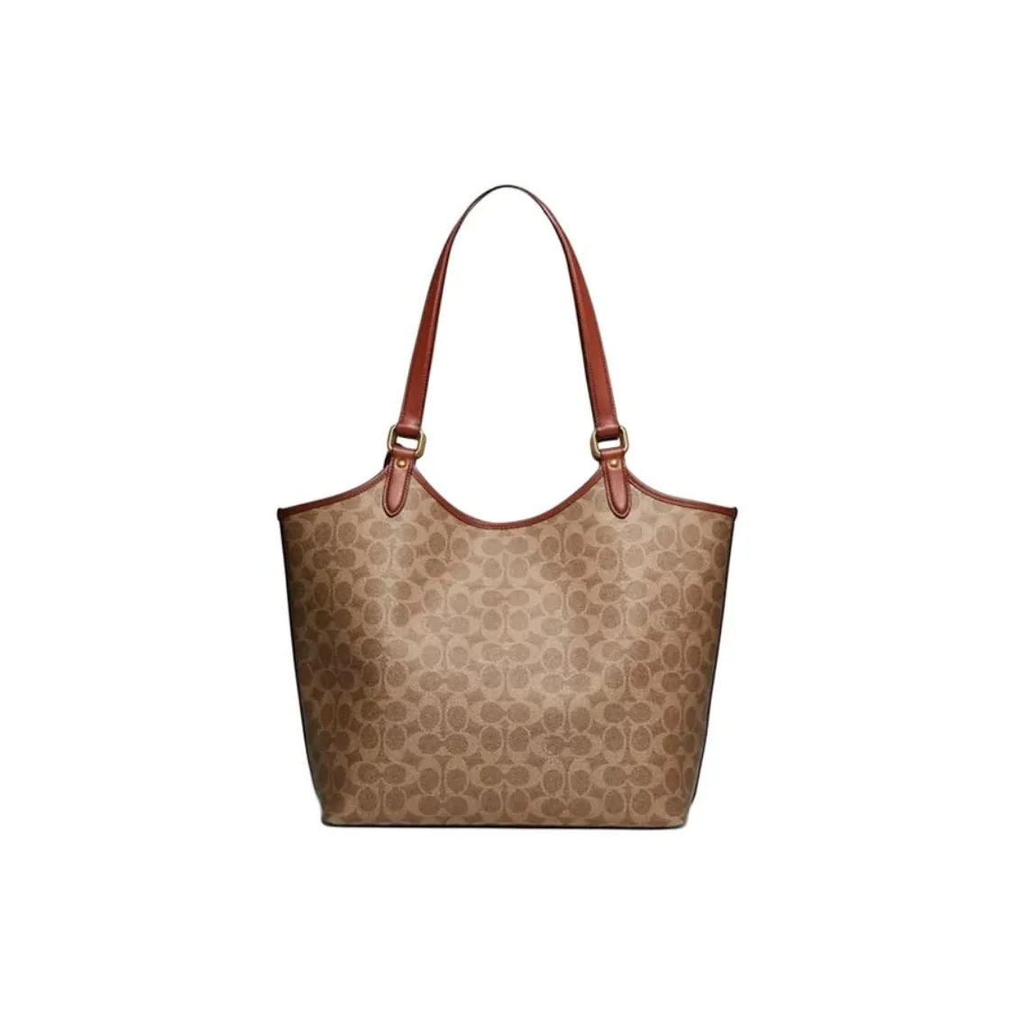 To verify the authenticity of the COACH Day Shoulder Bag, inspect the artificial leather for quality. The brown-yellow color should be rich and even, with no fading. The magnetic closure should function smoothly, and the stitching should be tight and consistent.