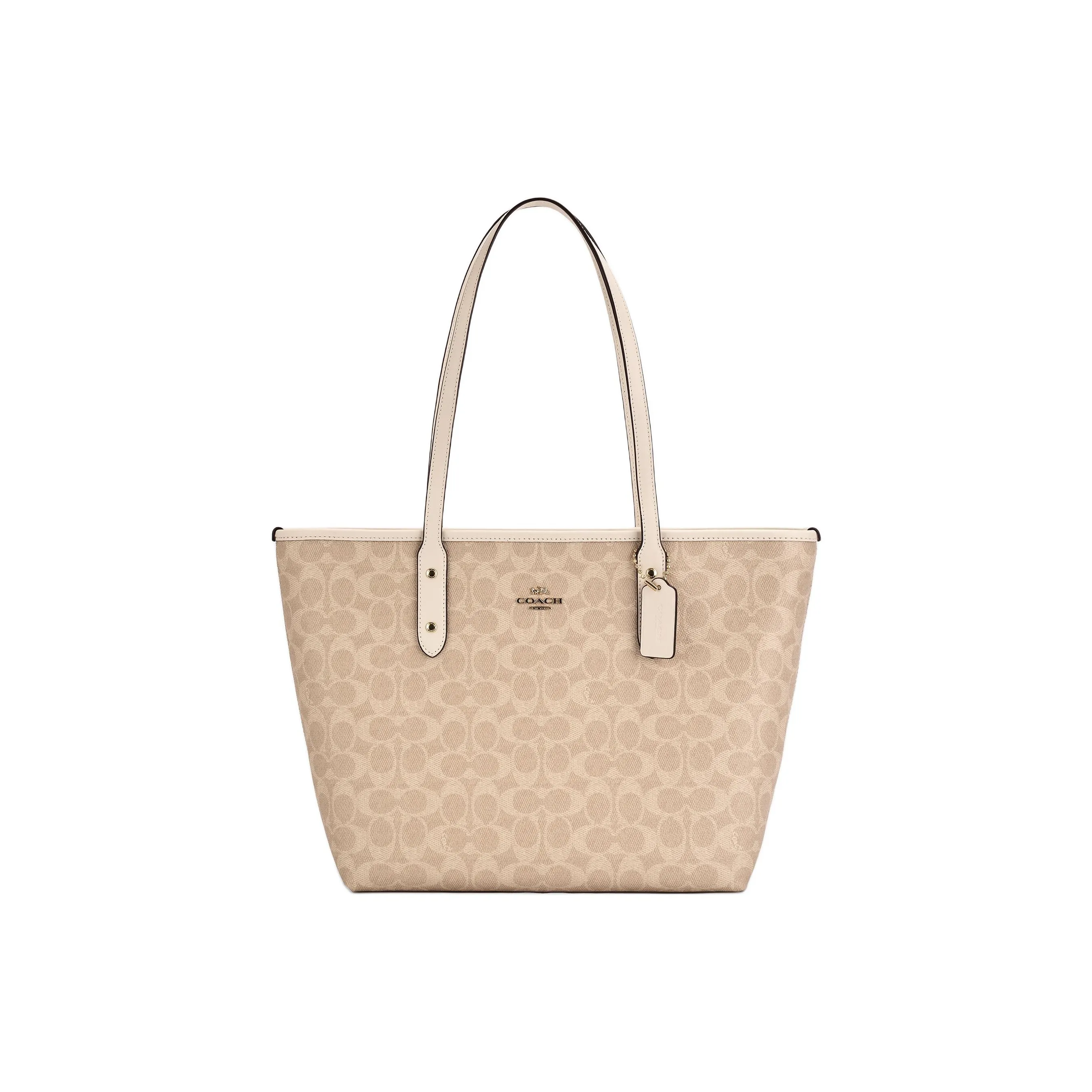 For the COACH City Zip Tote in Pure White, check the cow leather for any signs of wear or discoloration. Authentic COACH bags will have a luxurious feel and a consistent color throughout. The stitching should be flawless, and the bag should maintain its shape without sagging.