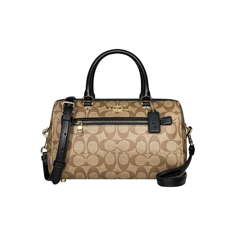 COACH Rowan Monogram Canvas With Leather One Shoulder Handbag, Crossbody Bag Tubas Women's Light Brown Black Frame