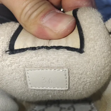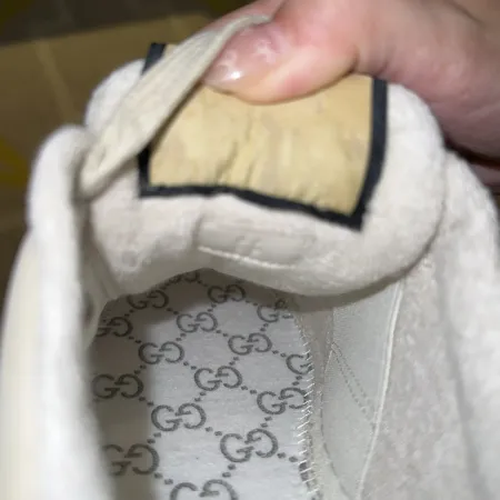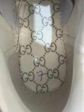 When assessing the authenticity of the Low Top Beige model, focus on the leather quality. Genuine GUCCI sneakers will have a soft yet durable leather that feels premium to the touch. The stitching should be even and tight, with no gaps or fraying. The color should be uniform across the shoe.