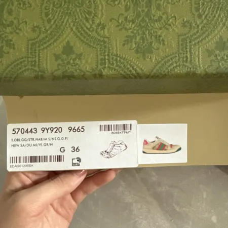 For the Butter/Beige/Ebony model, examine the color scheme and stitching. Authentic GUCCI sneakers will have a consistent color palette with no fading. The stitching should be tight and even, showcasing the brand's commitment to quality.