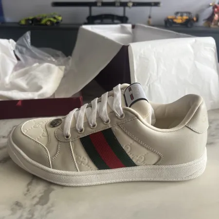 GUCCI Screener Skateboard Shoes Women's Low Top Butter/Beige/Ebony