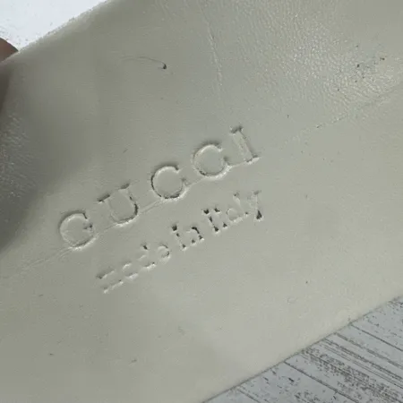 For the Beige/White/Green variant, check the leather quality and color consistency. Authentic GUCCI sneakers will have a smooth finish with no discoloration. The rubber sole should feel durable and have the GUCCI logo embossed. Inspect the toe box for proper shape and alignment, as authentic pairs maintain a consistent silhouette.