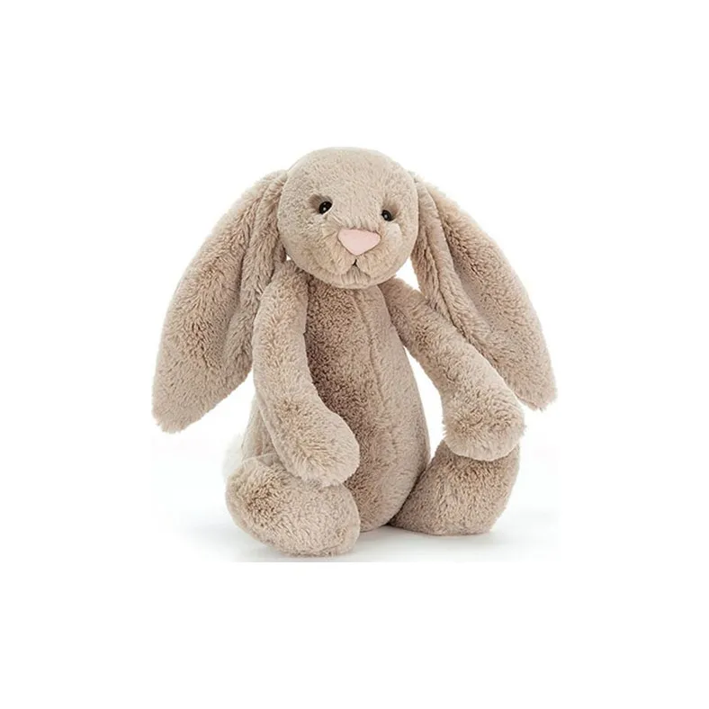 To identify the authenticity of the Jellycat Bashful Beige Bunny, examine the plush texture and overall craftsmanship. Authentic Jellycat bunnies have a soft, high-quality plush that feels luxurious to the touch. The stitching should be even and secure, with no loose threads or irregularities. The bunny's facial features should be embroidered with precision, showcasing a friendly expression. Additionally, check the color consistency; genuine products maintain a uniform beige hue without fading or discoloration.