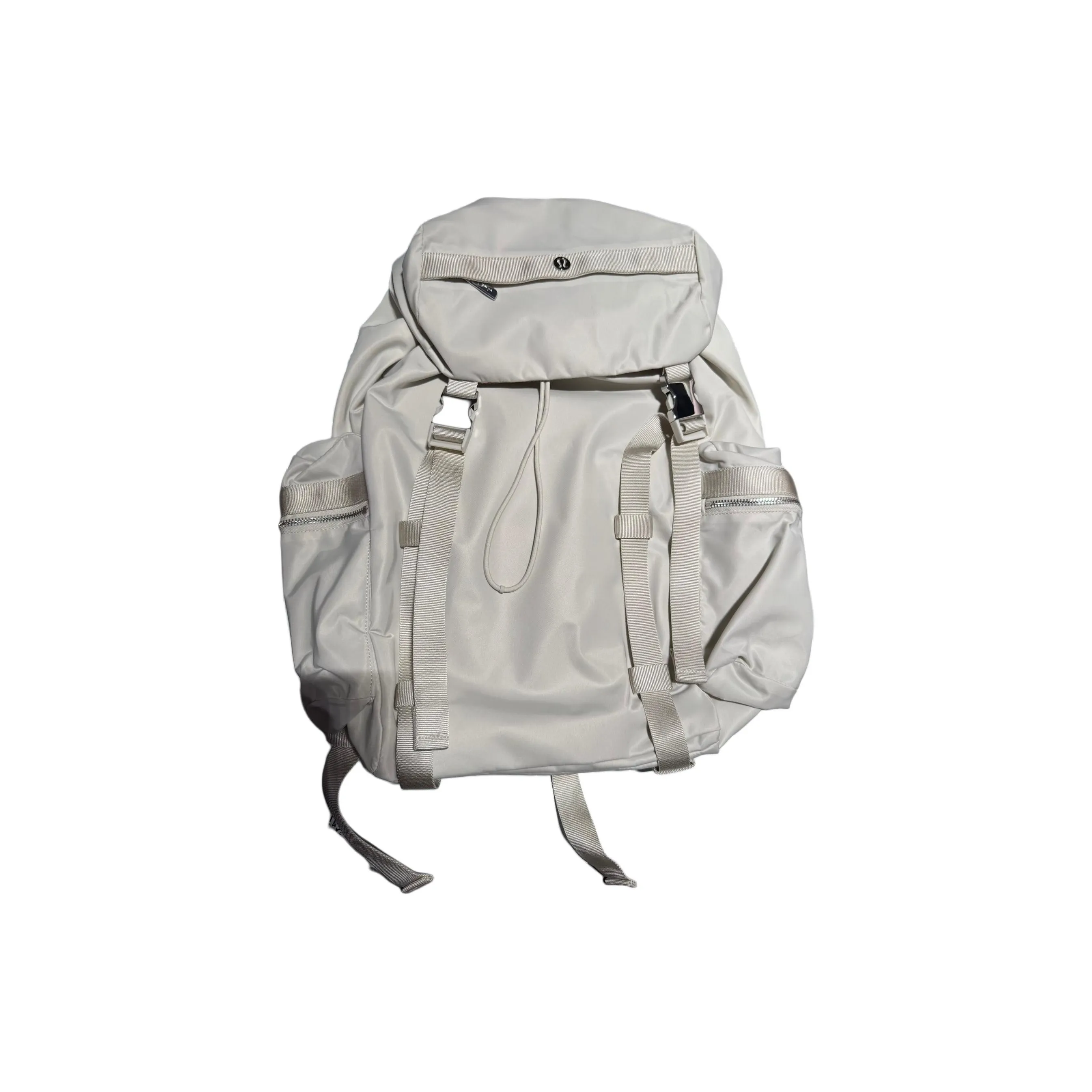 When assessing the authenticity of the Ivory White Lululemon backpack, focus on the color and texture. Genuine products will have a consistent color without fading or discoloration. The nylon material should feel sturdy and not flimsy, with a smooth finish. Inspect the zippers and hardware; they should operate smoothly and feel robust.