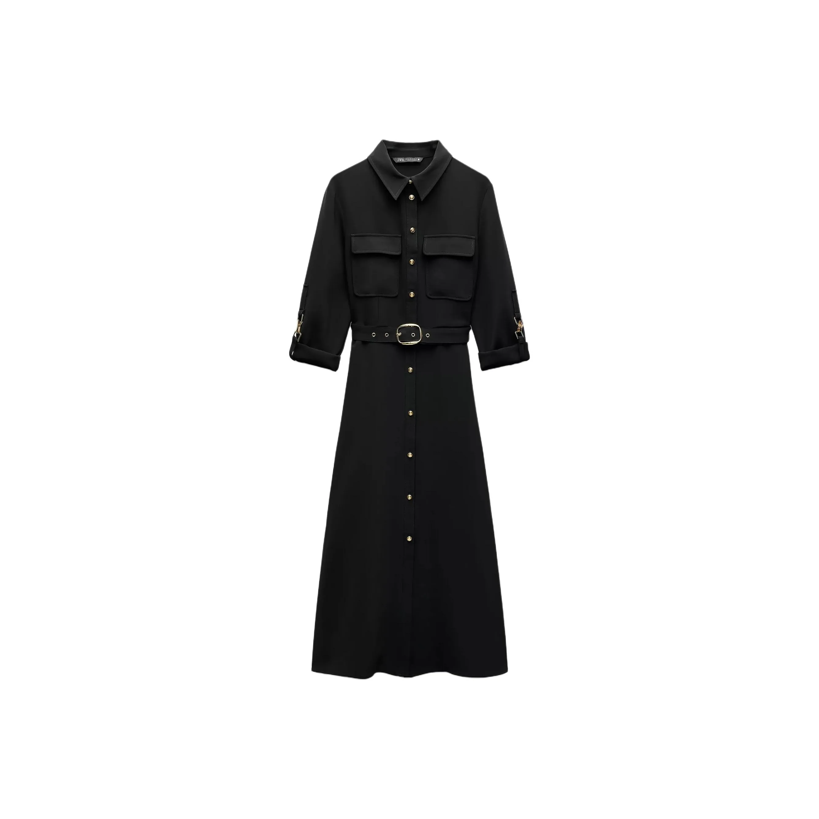 The ZARA Long Sleeved Dresses for Women in black is a classic addition to any wardrobe. Made from a blend of 93% polyester and 7% elastane, this dress offers a flattering fit. Its solid color and moderate thickness make it perfect for summer outings. With its timeless design, this dress is a staple piece that can be dressed up or down.