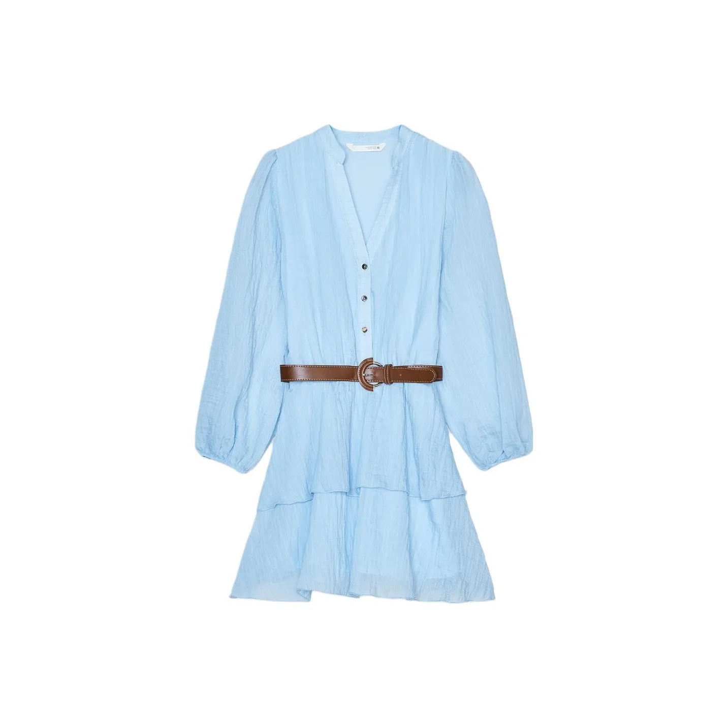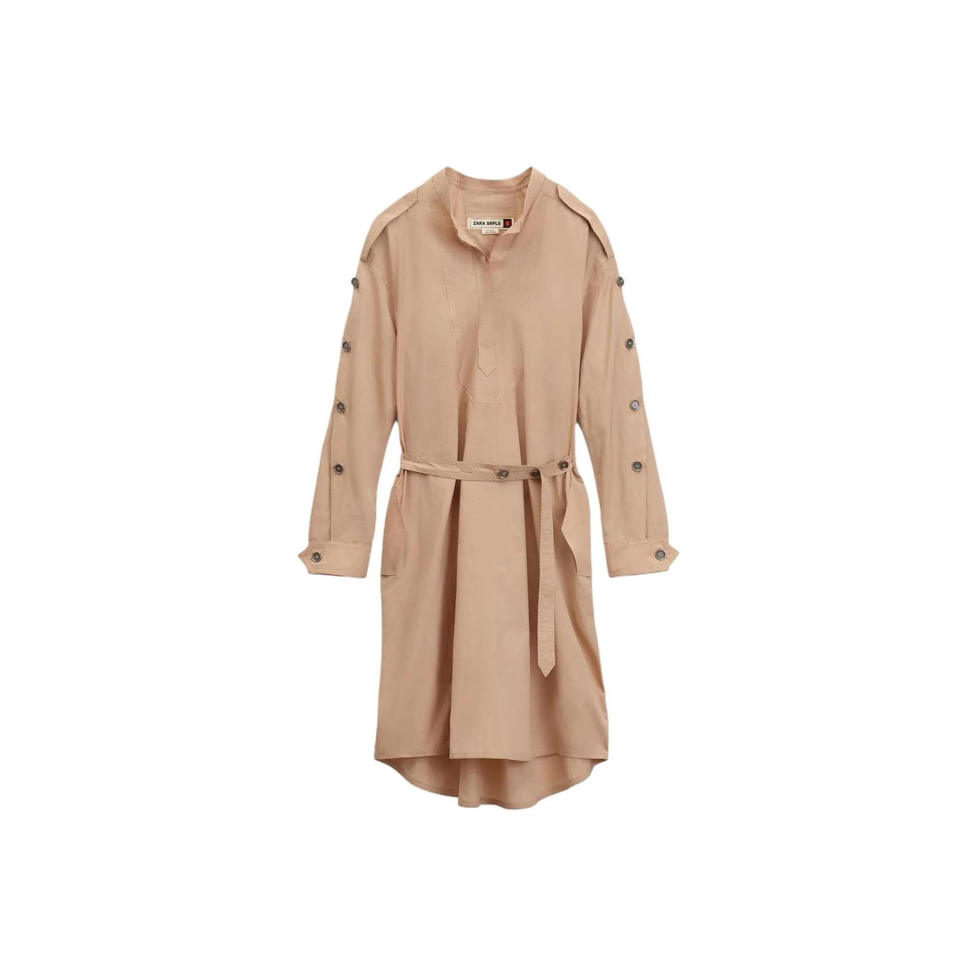 The ZARA Long Sleeved Dress for Women in aqua blue is a vibrant choice for summer. Made from 100% cotton, this dress offers a soft and breathable fit. Its solid color and single-breasted placket make it easy to wear, while the moderate thickness ensures comfort. This dress is a great addition to any summer wardrobe.