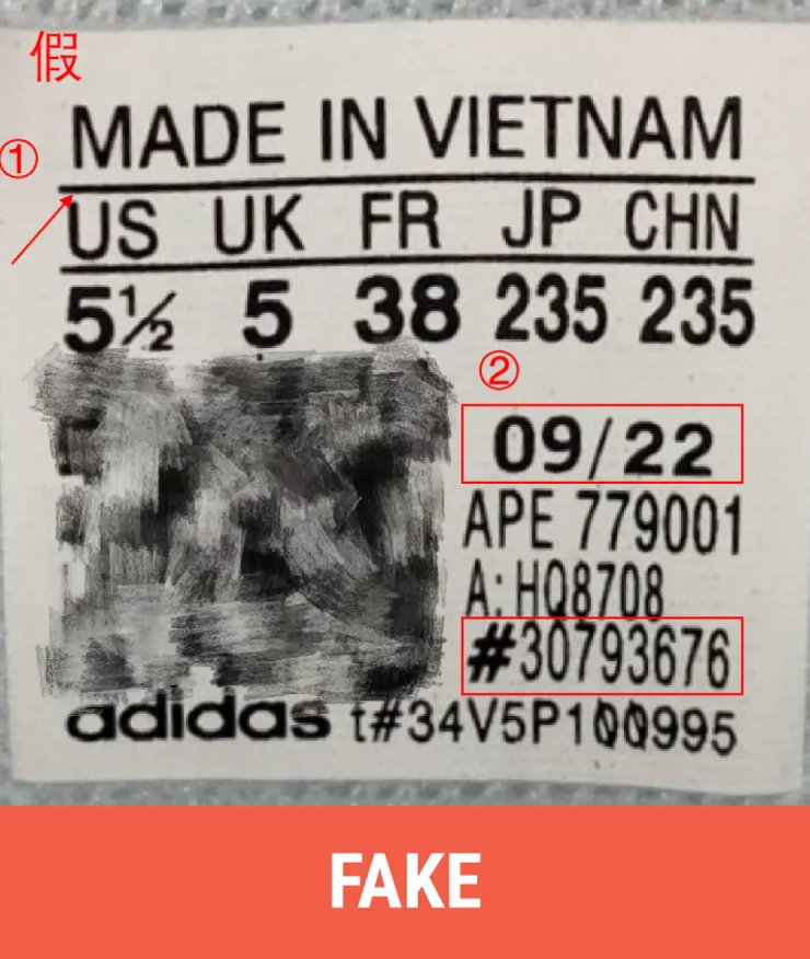 1. The size frame line is not uniform in thickness, thinner, and closer to the "US UK" row, and with a lighter ink color.