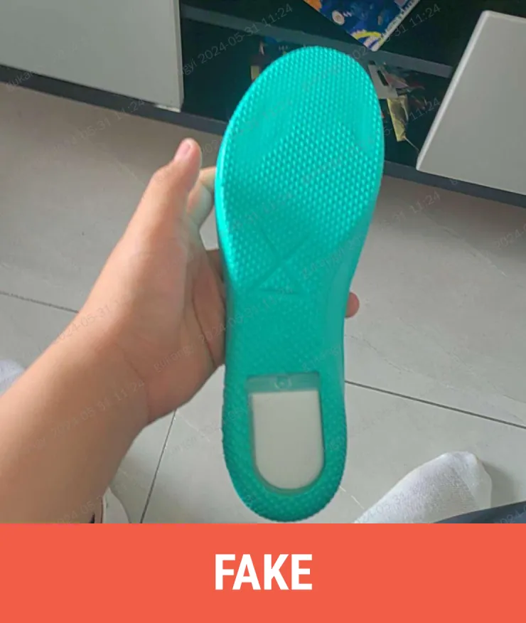 Fake: The insole color is blue with an air cushion at the heel of the insole, and the symbol in the middle is larger.