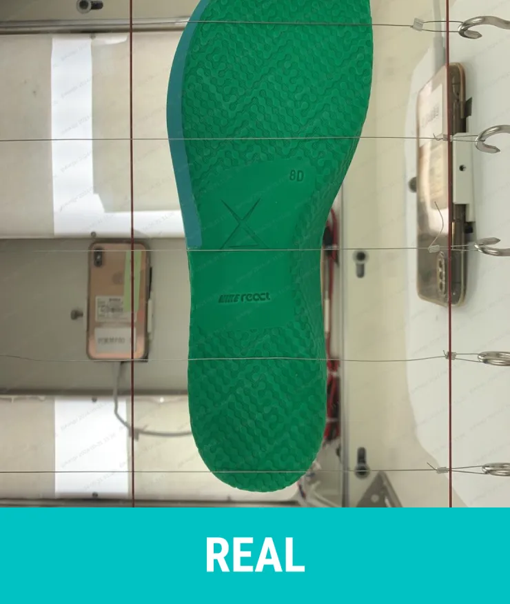 Real: The insole color is green with no air cushion at the heel of the insole, and the symbol in the middle is smaller.