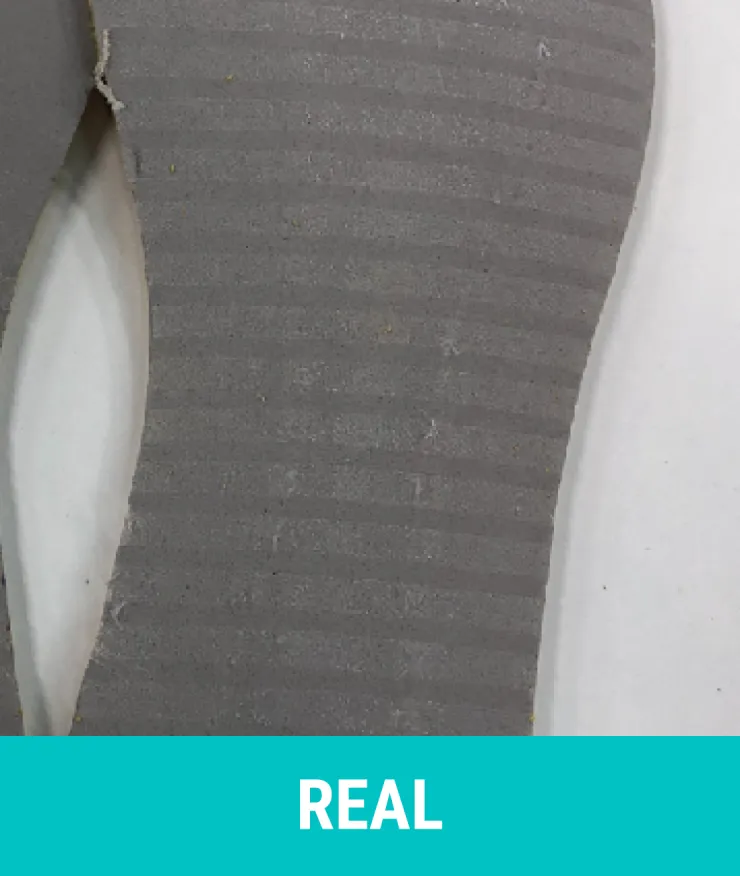 Real: The upper is tight without any looseness, and the stitching is uniform; the midsole fabric is smooth.